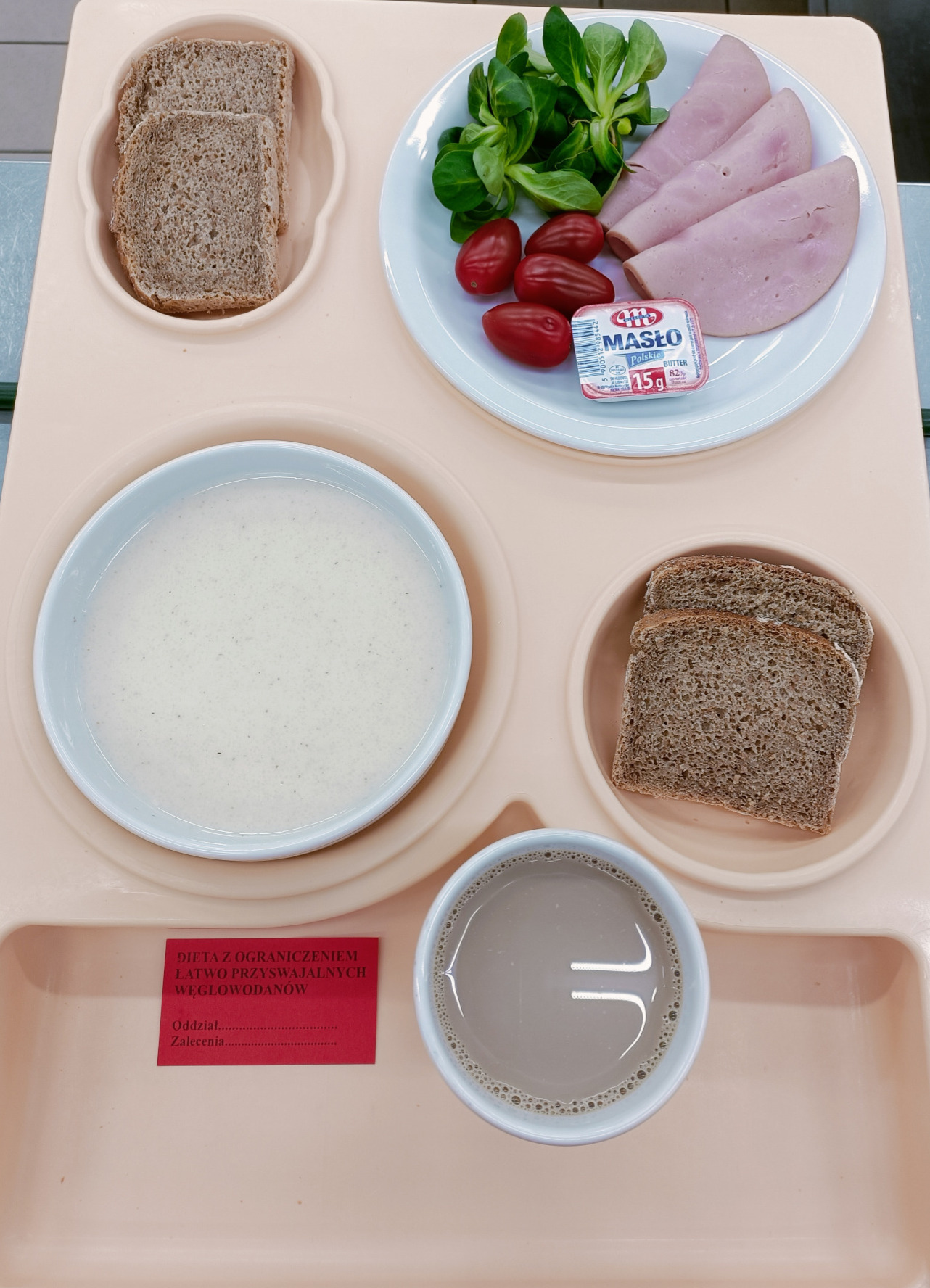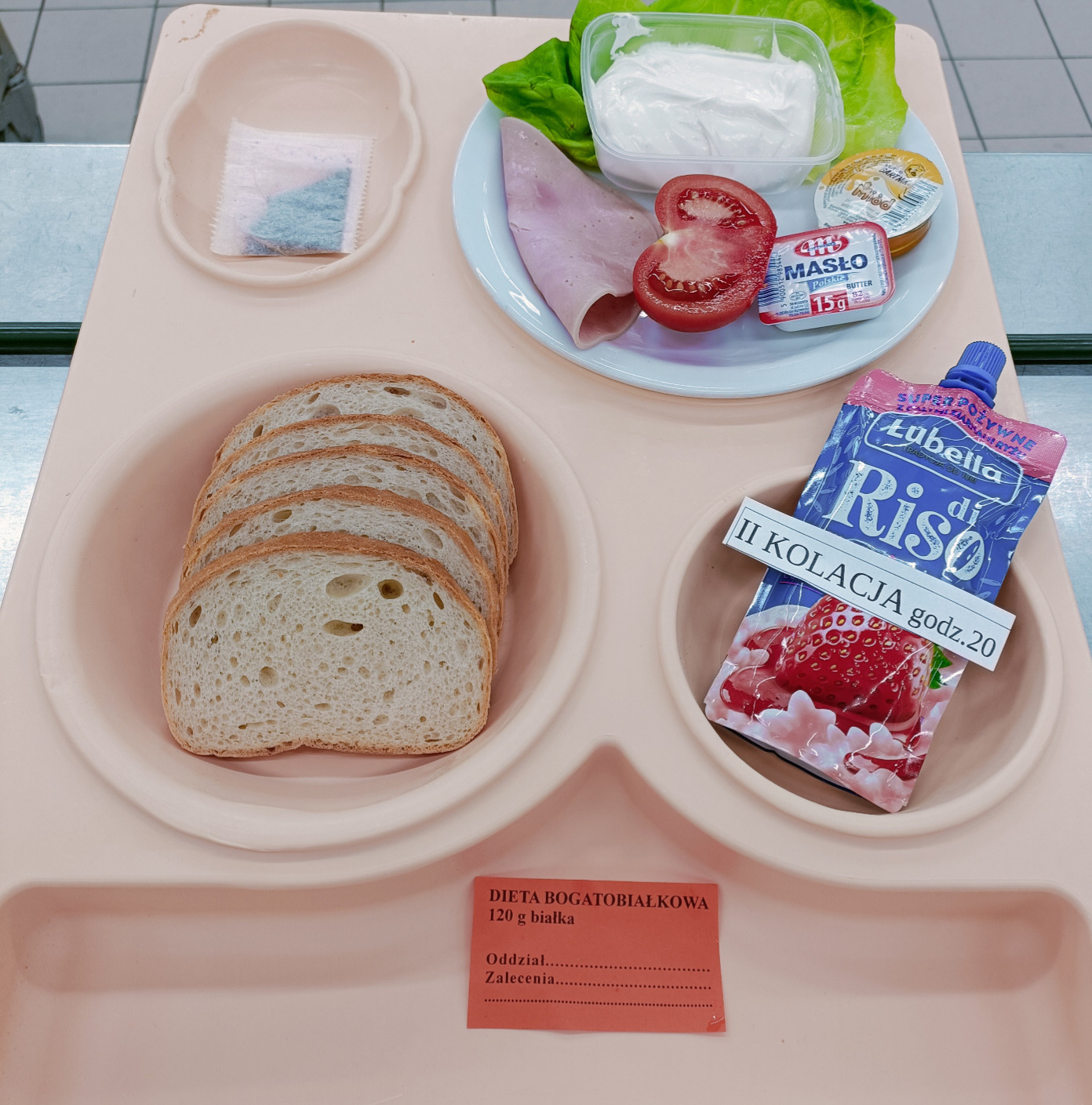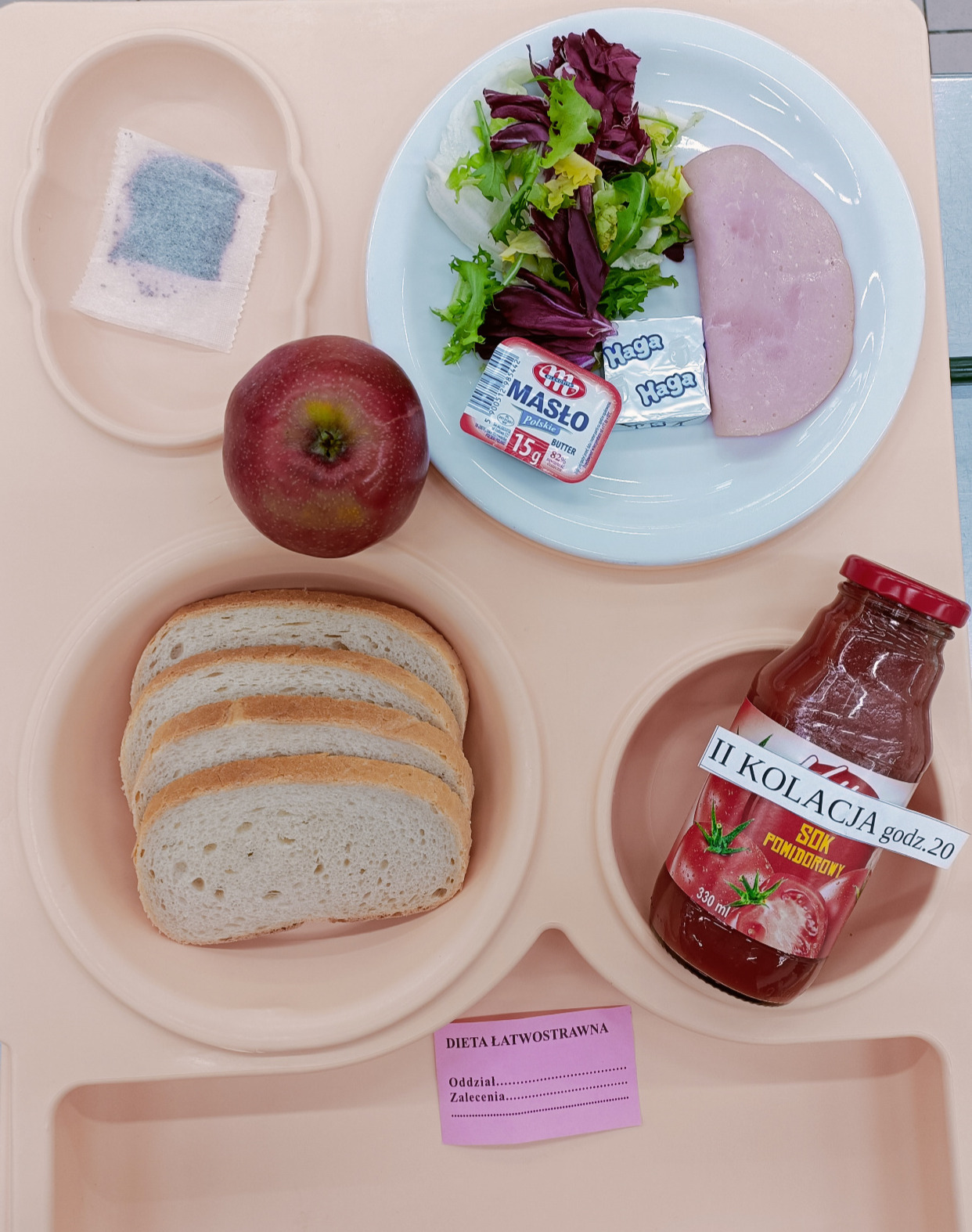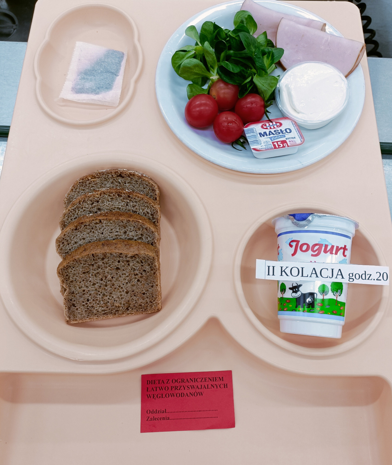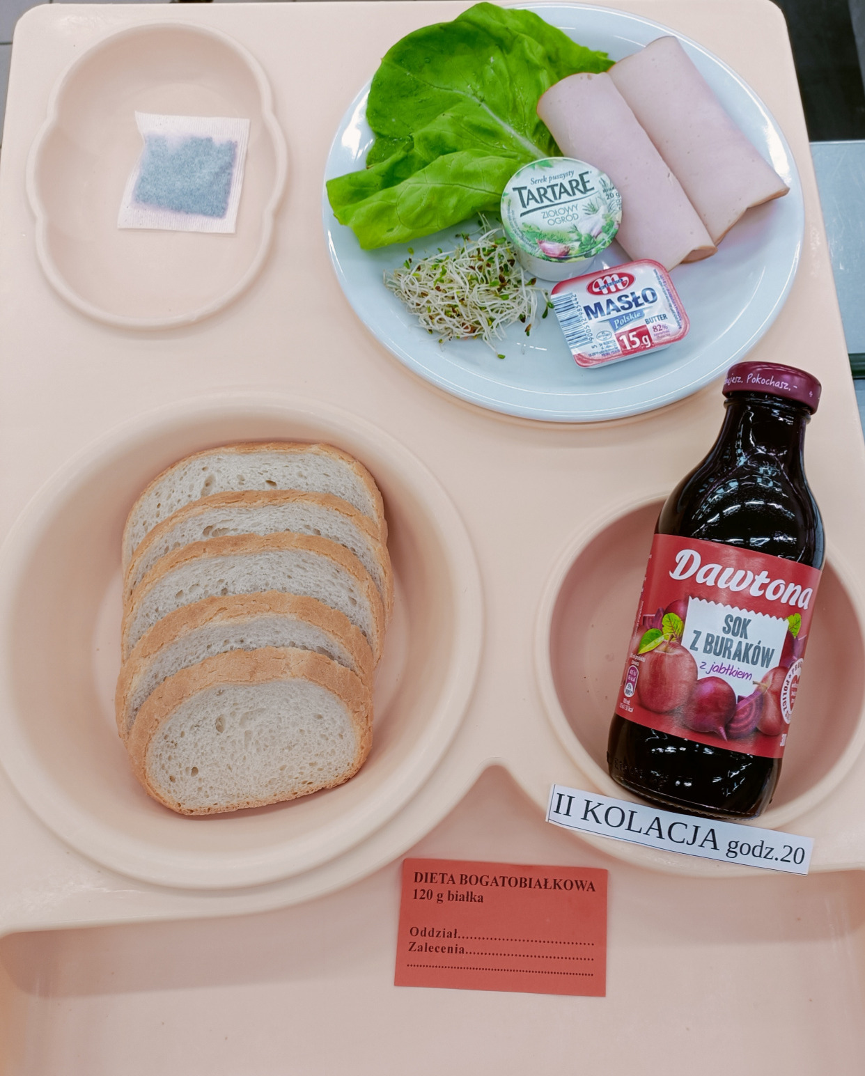 Herbata b/c masło porcyjne 15g chleb razowy 70g chleb graham 60g szynkowa wieprzowa 50g sałatka jarzynowa, dieta 100g sałata 6g II kolacja- sok pomidorowy 1szt-330ml |