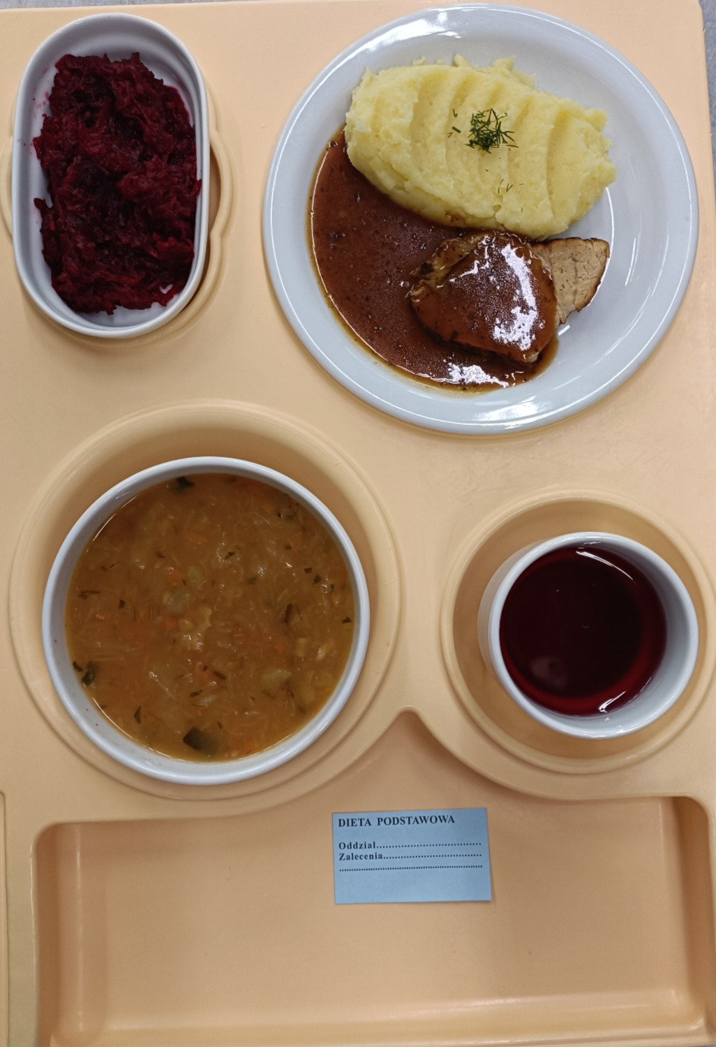 Zupa pomidorowa gotowana z makaronem, dieta 300g pulpet z indyka gotowany 65g sos koperkowy 80g buraki gotowane 120g ziemniaki gotowane 200g napój owocowy gotowany 200ml |